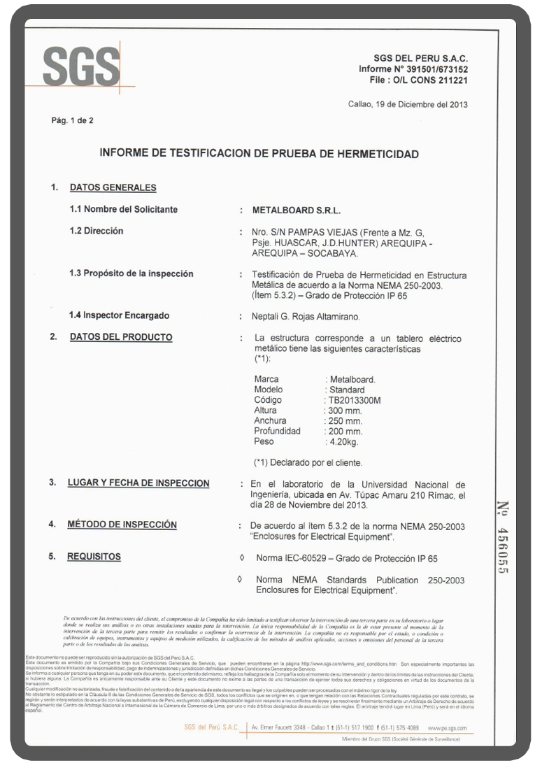 Norma NEMA Standards Publication 250-2003 Enclosures for Electrical Equipment.